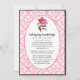 Pretty pink floral damask death funeral announcement, with a white oval text area decorated with a single pink lily, at the top. A black frame surrounds the edge of the card. Personalise the black text to suit your needs.