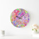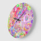 Pink, Lime Green and Blue Bubbly Art Large Clock