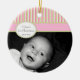 Pink Lime Stripe Baby's 1st Christmas Photo Ceramic Ornament