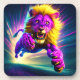 This coaster has a pink lion on it.