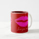 Pink Lips Red Glitter Love You More Script Sparkly Two-Tone Coffee Mug