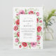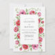 This design features a lush arrangement of vibrant pink peonies and delicate green foliage set against a crisp white background. The watercolor aesthetic creates a romantic and airy mood, perfect for a sunny outdoor event. The palette highlights varying shades of rose, watermelon, and emerald green, offering a fresh take on traditional botanical styles.