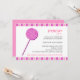 Lollypop (or Lolly pop or Lollipop) is a piece of hardened candy attached to the end of a small stick. The present design is a lollipop which is of a bright pink colour and a round shape. Children are very fond of this type of candy. This pink round Lolly pop / Lollipop Birthday invitation card is perfect for kids birthday parties. © Morning 6