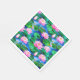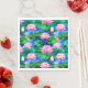 Paper napkins in a pattern of blooming pink lotus flowers and lush green lily pads floating on a richly textured, blue-toned water surface, in jewel-toned shades of pink and emerald green