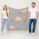 Pink Lotus Flowers on Light Silver Grey Fleece Blanket