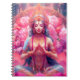 Goddess Lakshmi Notebook – Adorned with the serene image of the Hindu goddess of abundance, this notebook features her seated in a vibrant pink lotus, dressed in royal blue with gold accents and an ornate crown. A glowing pink and blue abstract backdrop adds an ethereal touch. Perfect for journalling, manifesting, or spiritual reflection.
