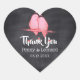 Rustic chalkboad and pink love birds wedding favour thank you heart stickers- Background is black chalkboard look. Top is adorned with illustrations of sweet, cute pink love birds on a branch with hearts above and below them . Reads 'Thank You' in brush lettering. Couple's names in whimsical letters and wedding date printed at the bottom. Cute chalkboard wedding stickers with a touch of romance. Perfect wedding favours for chalkboard wedding decor, pink wedding colours, rustic weddings, etc. So cute for teacher's wedding! Click Customise option to change text colours, size, and font styles. Pretty love bird wedding favour stickers or wedding thank you envelope seals. We have more love birds wedding supplies in our Zazzle.com/angela65 shop.