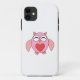 This awesome iPhone case features a cute cartoon of a pink owl with sleepy eyes, a small beak and cute little feet. The owl has a big red love heart in the middle of its belly and wings wide open ready to give someone a big hug.