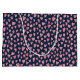 Cute pink watercolor hearts pattern gift bag in navy blue. Matching items and other colours available. Artwork from artists own illustrations.