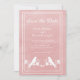 Elegant and simple Wedding save the date invite featuring a pair of lovebirds resting on a floral vine against a Pink background. This design is a unique choice for announcing a modern wedding. Easy to customise with your wedding details. Click "Customise It" to find more personalisation options.