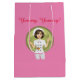 This pretty pink gift bag for lunch has a Woman chef on the from and another woman chef with a desert on the back. Perfect for Lunch time. The front has words that Lunch is Served and the back has words Yummy, Yummy in red. Good for the man who packs his lunch.