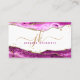 Pink Magenta Agate Gold Glitter Monogram Script Business Card