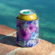 Pink Magenta Blue Floral Pattern Can Cooler