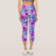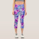 Pink Magenta Blue Floral Pattern Capri Leggings
