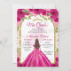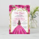Pink Magenta Floral Princess Gold Arch Quinceanera Invitation
