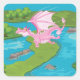A pink magic dragon flying across a landscape. This design looks really effective on these Stickers