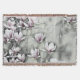An elegant and chic magnolia flowers blooming branch hanging down from a magnolia tree, on a black grey white background. This is a drawing