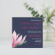 Pink Magnolia Flower In Bloom | Blue Wedding Invitation