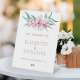 Rustic modern personalised wedding welcome tabletop pedestal sign featuring a trendy blush pink magnolia bouquet with mint green eucalyptus foliage and two little copper hearts. ++++++++++++++ Easy to customise with the bride and groom names, date and place. +++++++++++++ Suitable for outdoor garden backyard romantic floral bohemian wedding receptions.