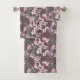 A Beautiful Brown Bath Towel Set Designed With Pink Magnolia Flowers And Birds In Branches
