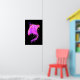 a decorative artwork of a pink manta ray on black background as a colourful poster print
