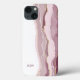 Pink Marble iPhone Case. Elevate the aesthetic of your iPhone with our Abstract Watercolor Geode Pink Marble Case. Imprinted with a unique design inspired by the elegant patterns and shades of dusty rose and blush pink present in natural geodes, this case adds a touch of charm to your device. The simple and minimalist style makes it a perfect accessory for those who appreciate understated elegance. The gold and pink hues add a trendy hint, adorning your phone in a sophisticated manner. Additionally, we offer a personalised monogram, giving your device a distinctive character.