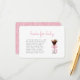 This cute baby shower enclosure card features a watercolor illustration of an espresso martini decorated with a pink ribbon. Above, the words "books for baby" appear in trendy pink handwriting script. The editable message is in gray sans serif font. The back of the card features a pattern of white hand-drawn stripes on a pink background. Ideal for a girl's baby shower.