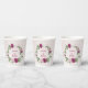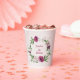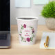beautiful pink mauve burgundy and white flowers with some green leaves botanical paper cup.