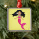 Pink mermaid art cartoon of a cute girly mermaid with black hair and a pink tail on a customisable colour background.