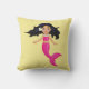 Pink mermaid art cartoon of a cute girly mermaid with black hair and a pink tail. This cute fairy tale pillow would be suitable for a girl or a girl's room accessory.