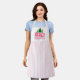 This cheerful Christmas apron features a pink and green “Merry Christmas” design with trees across the top and soft pink stripes below.