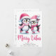 Pink Merry Vibes Ice Skating Penguins Christmas Holiday Card