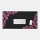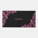 Elegant pink metal floral lace swirls over a black floral damask pattern. Custom Name