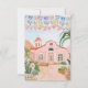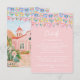 This destination wedding response card features painted artwork of a Mexican folk dancer surrounded by tropical flowers. All the important wedding details can be personalised. Colours include green, pink, white and coral.