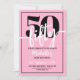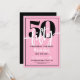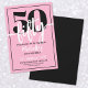 The text combines simple modern and script fonts in a mix of black and white, creating a playful yet sophisticated contrast against the vibrant pink backdrop. This invitation is perfect for a chic and fun 50th birthday celebration.