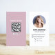 Make a lasting impression with this modern pink photo business card featuring a scannable QR code for quick access to your website and social media profiles. The professional minimalist design highlights your company contact details alongside your photo for a clean, approachable, and stylish look. Perfect for entrepreneurs, freelancers, and small business owners who want to network effortlessly and showcase their brand with a touch of modern elegance.