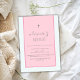 Pink Modern Cross Christening Girl Baptism Invitation
