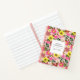 modern daisy floral easter spring pattern. This stylish girly, personalised notebook features a hand painted floral design in bright pink, yellow, greens, and terracotta red, all over a custom colour background (shown in pink). Makes a great gift for anyone who loves beautiful, floral designs and writing notes! Original artwork by Caroline Bonne Müller