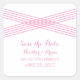 Simple and elegant Modern Deco Save the Date Stickers with a striped criss-cross hatched art deco design in pink. These classic save the date stickers can be easily customised with your wedding details. For more customisation options, click on the Customise It button.