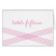 Simple and elegant Modern Deco Wedding Table Number Card with a striped criss-cross hatched art deco design in pink. This classic table card can be easily customised with your wedding details. For more customisation options, click on the Customise It button.