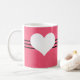 Sweet and charming Modern Heart Mug featuring a magenta background and a cute heart and striped border. This cute and girly mug is perfect for enjoying your favourite hot beverage! Customise with the text of your choosing. Click on "Customise" to find additional personalisation options.