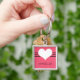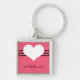 Sweet and charming Modern Heart Premium Keychain featuring a magenta background and a cute heart and striped border. This cute and girly keychain will keep your keys together with style. Customise with the text of your choosing. Click on "Customise" to find additional personalisation options.