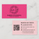 Girly Pink Modern Minimalist Logo QR Code Business Card. This square business card keeps things clean and stylish with elegant serif fonts that add a classic feel while still keeping the overall vibe modern. The front has a vibrant magenta hot pink background showcasing your logo, name, and title or business name in a sharp, refined layout. The back shifts to a soft blush pink background with space for a professional photo—perfect for featuring yourself, your product, or a client project—along with your contact details. A QR code makes it easy for customers to check out your website or social media. The layout stays simple and polished, and all colors can be customized to fit your brand. A great pick for stylists, influencers, creatives, and anyone wanting a chic, contemporary card with a touch of classic elegance.