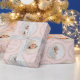 Pink Modern Script Merry Christmas Family 6 photo Wrapping Paper