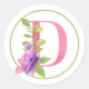 PINK MONOGRAM D WITH SUMMER FLOWERS CLASSIC ROUND STICKER