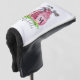 This cute monogram golf head cover features a stylish pink watercolor golf bag filled with clubs, surrounded by a touch of green grass. The design cleverly incorporates a simple serif font initial monogram on the bag, seamlessly blending into the bag's design. Below the monogram, the full name is elegantly displayed in script typography, adding a personal touch. The monogram is currently in a dark gray, almost black, to match the bag's accents, but it can be customized to your preferred color. Perfect for the lady golfer in your life, this fun and stylish golf head cover makes a great gift for Christmas, birthdays, Mother’s Day, or any special occasion. Personalized Monogram Golf Head Cover Initial Name Pink Watercolor Golf Bag Cute Girly For Her.