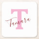 Pink Monogram Paper Coaster | Custom Name