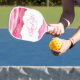 Pink monogram pickleball paddle personalised with a woman or girl's name and initial. Double-sided with the same design.