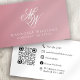 Pink Monogram QR Code Minimalist Business Card