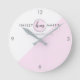 Modern professional simple customizable business wall clock with editable pink monogram style logo. Great for anyone in the beauty or fashion industry. Great for freelance makeup artists, cosmetologist, estheticians, aestheticians, fashion stylists and more. Check out our fully matching other products. If you have a custom request - please send us a message or email: zazzle@cannydesign.com